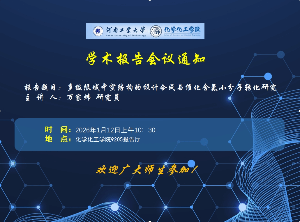 报告题目:多级限域中空结构的设计合成与催化含氮小分子转化研究报 告 人:万家炜 研究员报告时间:2026年...