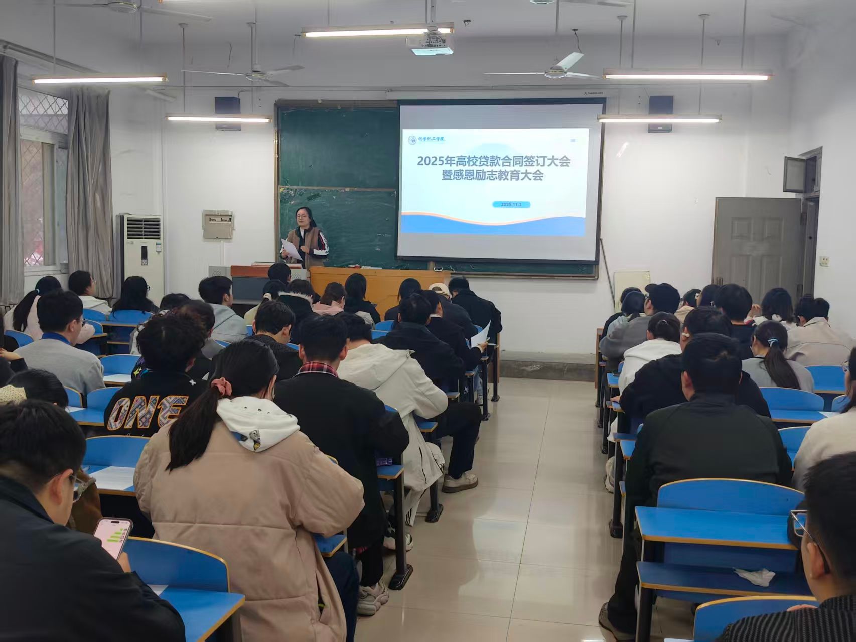 为深入贯彻落实国家高校资助政策,进一步完善家庭经济困难学生资助体系,激励学生奋发向上、励志成才,11月3日下午,化学化工学院在9141会议室隆重举行2025-2026学年高校贷款合同签订仪式暨感恩励志教育大会。学院资助工作负责人李丽娟老师、学院资助助理以及全体高校贷款学生共同参加了此次会议。