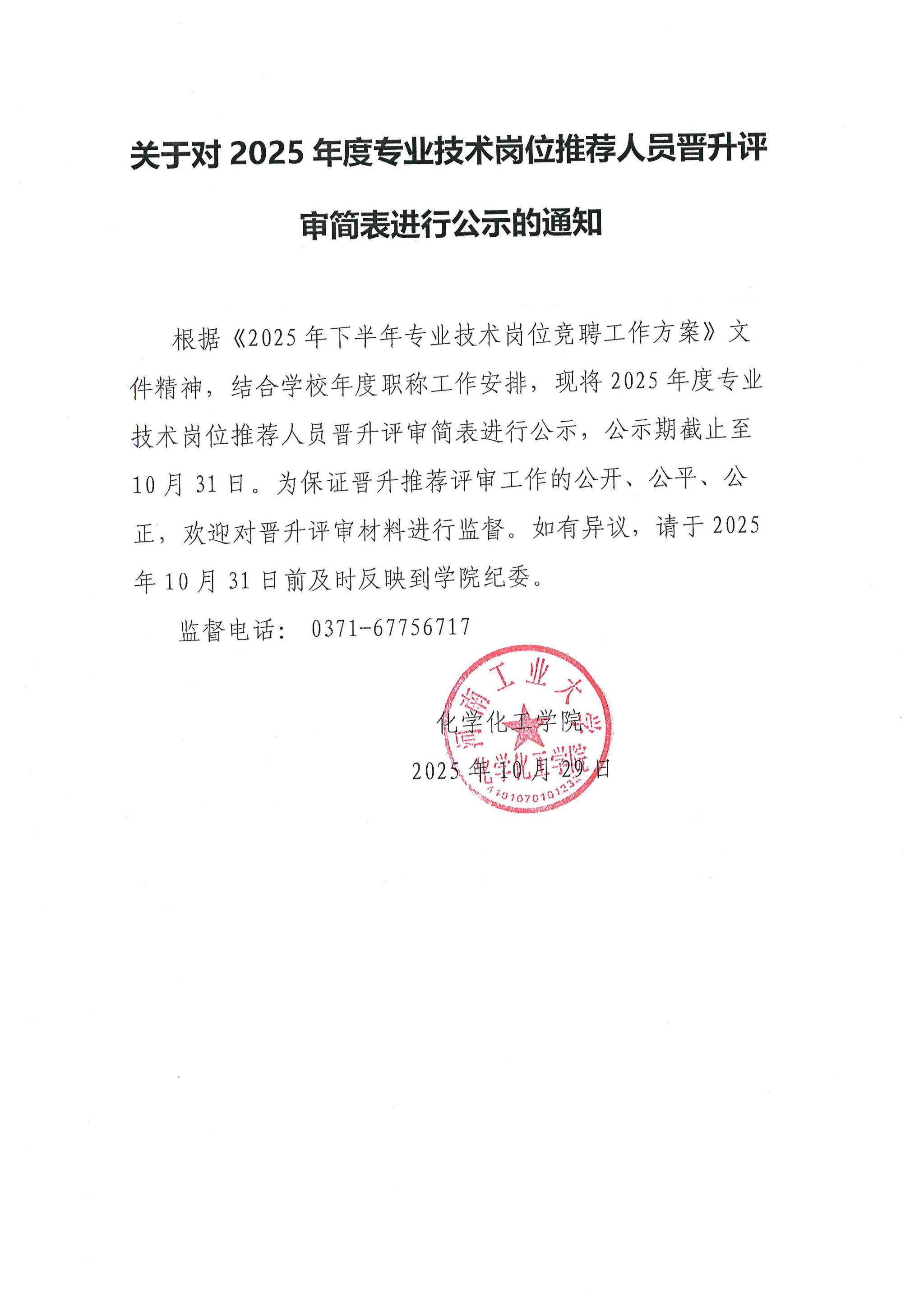 关于对2025年度专业技术岗位推荐人员晋升评审简表进行公示的通知
