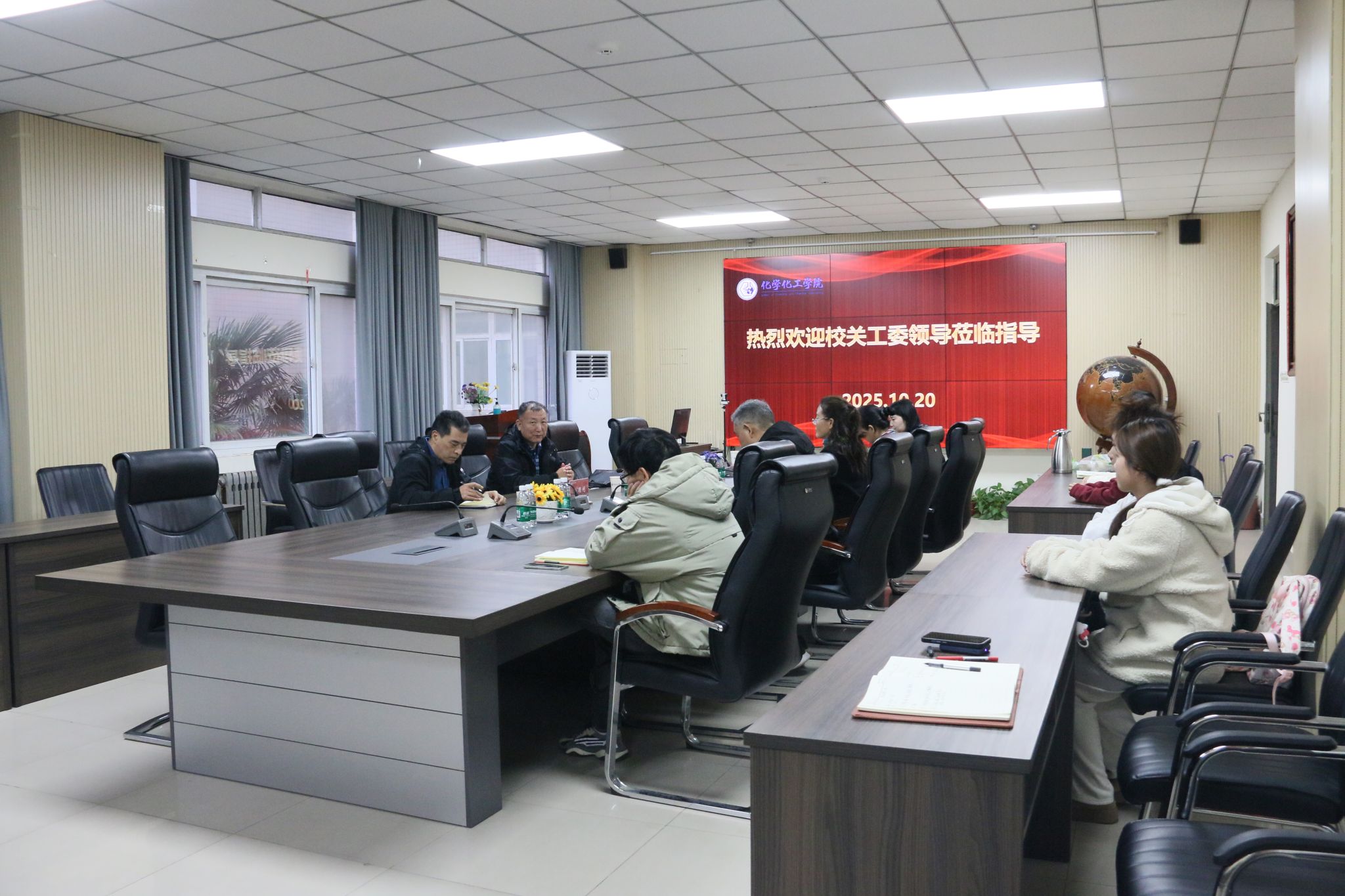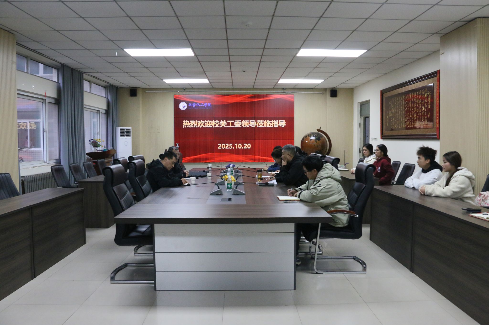 10 月 20 日,学校关工委副主任田顺利、常务副秘书长朱立峰一行深入化学化工学院,就学院关工委工作开展情况开展专题调研。化学化工学院党委书记武威、副书记范新爱及学院关工委委员全程参与调研会议,会议由武威书记主持。