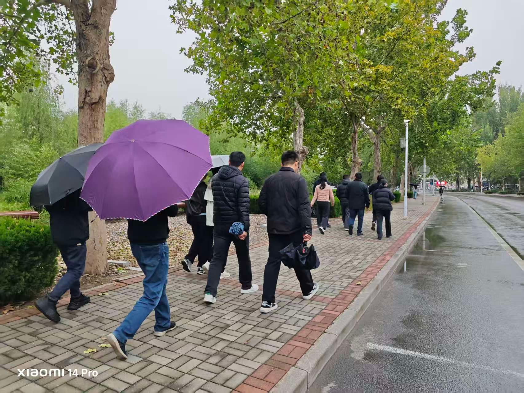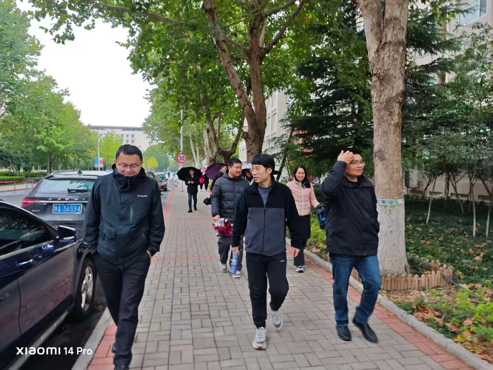 细雨中,教师们步伐矫健、意气风发。学院的关怀化作提前备好的雨具、沿途温暖的指引,陪伴大家在微凉秋雨中享受运动的快乐。活力因子在体内奔涌,多巴胺的分泌让每个人忽略了雨水的凉意,沉浸在愉悦之中,青春朝气与学院温情一同萦绕校园。学院深知,老师们在日常教学和科研工作中面临巨大压力,鲜少有时间关注自身健康,更易因小雨等天气放弃运动。因此,此次活动不仅是一次集体运动,更是学院对教职工的贴心守护,帮大家卸下科研过程中的焦虑、卸下疲惫、调节情绪。
