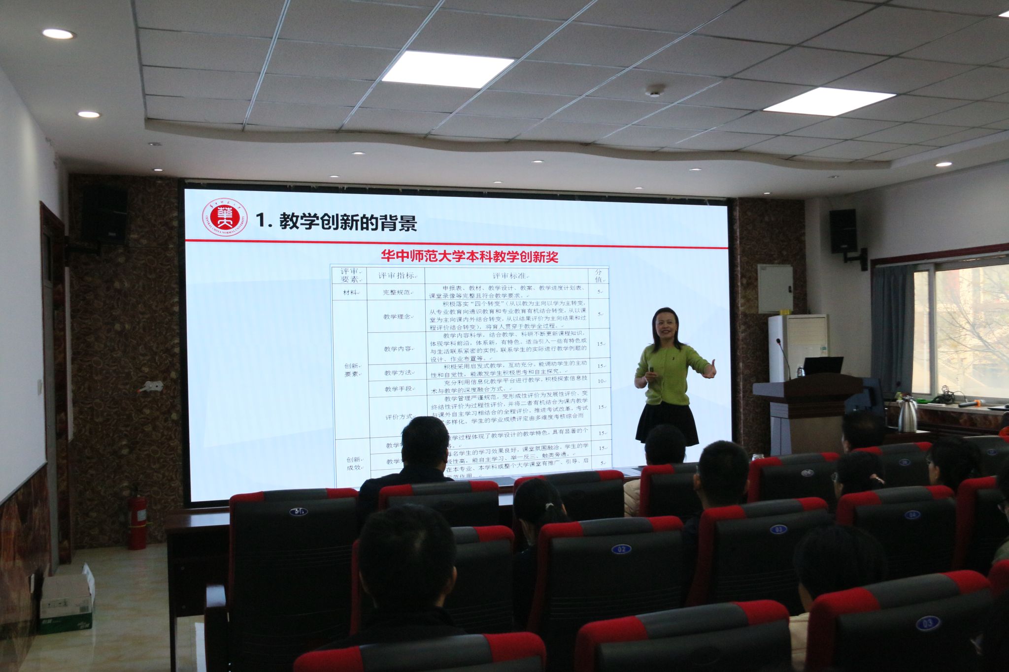 为进一步锤炼教师教育教学核心能力、提升课程建设内涵质量,12月2日,化学化工学院特邀华中师范大学佘能芳教授莅临学院,开展专题报告与实践培训相结合的教学工作坊。佘教授是第五届全国高校青年教师教学竞赛一等奖和湖北省第六届高校青年教师教学竞赛一等奖(理科组第一名)获得者、“先进工作者·五一劳动奖章获得者”工作室主持人,主讲的《有机化学》课程获批国家一流课程。学院领导、各专业教学负责人、教学骨干教师共60余人参加了此次培训活动,活动由学院院长曹晓雨主持。